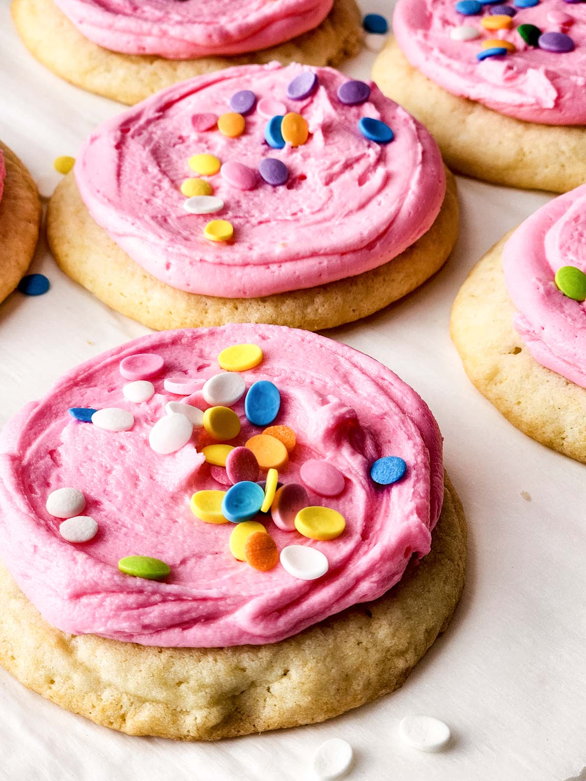 Recipe Listings: Pillowy Copycat Lofthouse Cookies topped with creamy frosting and colorful sprinkles are perfect for bringing a smile to your face!