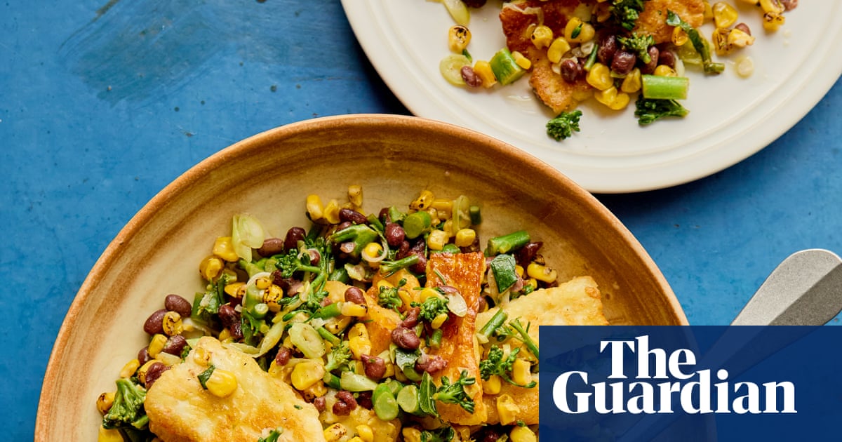 This is my version of a chopped salad, and I love the textural contrast of the crisp broccoli against the soft black beans and squeaky halloumi. The lime-and-spring-onion dressing makes everything sing, while the slightly bitter note of the charred corn keeps things interesting. A filling rainbow salad for warm days. Continue reading…