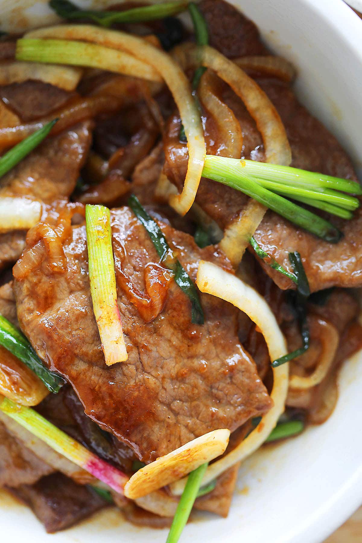 Onion Scallion Beef – Tender, juicy beef stir-fried with onions and scallions in a Chinese brown sauce. Delicious and easy recipe that takes only 20 mins.